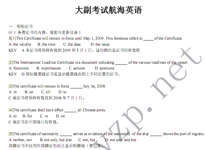 >>甲類(lèi)大副考試航海英語(yǔ)