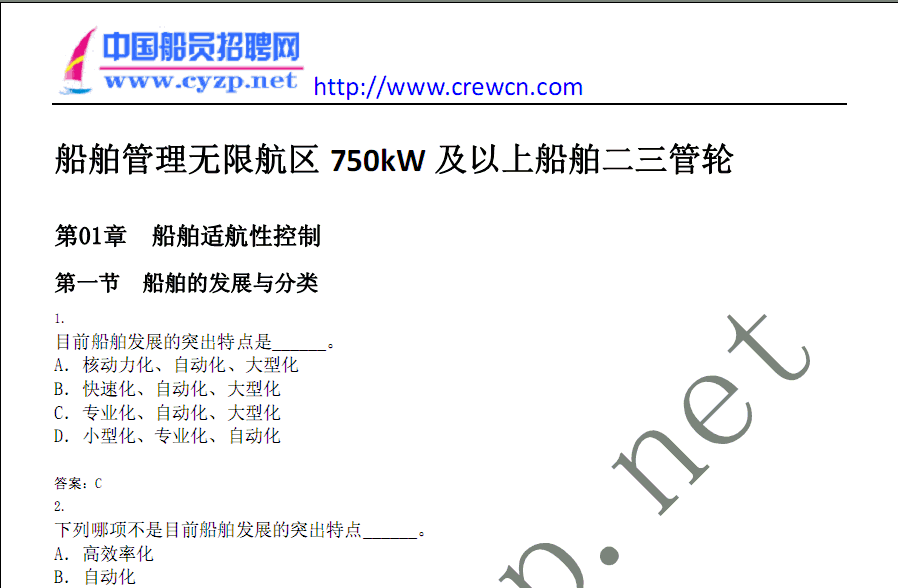 2009版船舶管理新題庫下載