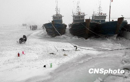 在營(yíng)口鲅魚(yú)圈漁港以及錦州中心漁港,海上已經(jīng)是“千里冰封”,一片銀白,看不到海水,一條條漁船牢牢地被冰封在海里。營(yíng)口市海洋與漁業(yè)局局長(zhǎng)王威良告訴記者,營(yíng)口鲅魚(yú)圈漁港曾被稱(chēng)為我國(guó)最北部的不凍港,但今年局部海冰最厚達(dá)1米左右,是30年來(lái)第一次遇到。錦州市海洋與漁業(yè)局介紹的情況表明,平均冰層比往年加厚一倍,在大凌河口和大有漁港岸邊最厚冰層達(dá)到1米,小凌河口和中心漁港近岸冰層平均厚度為30厘米-50厘米。